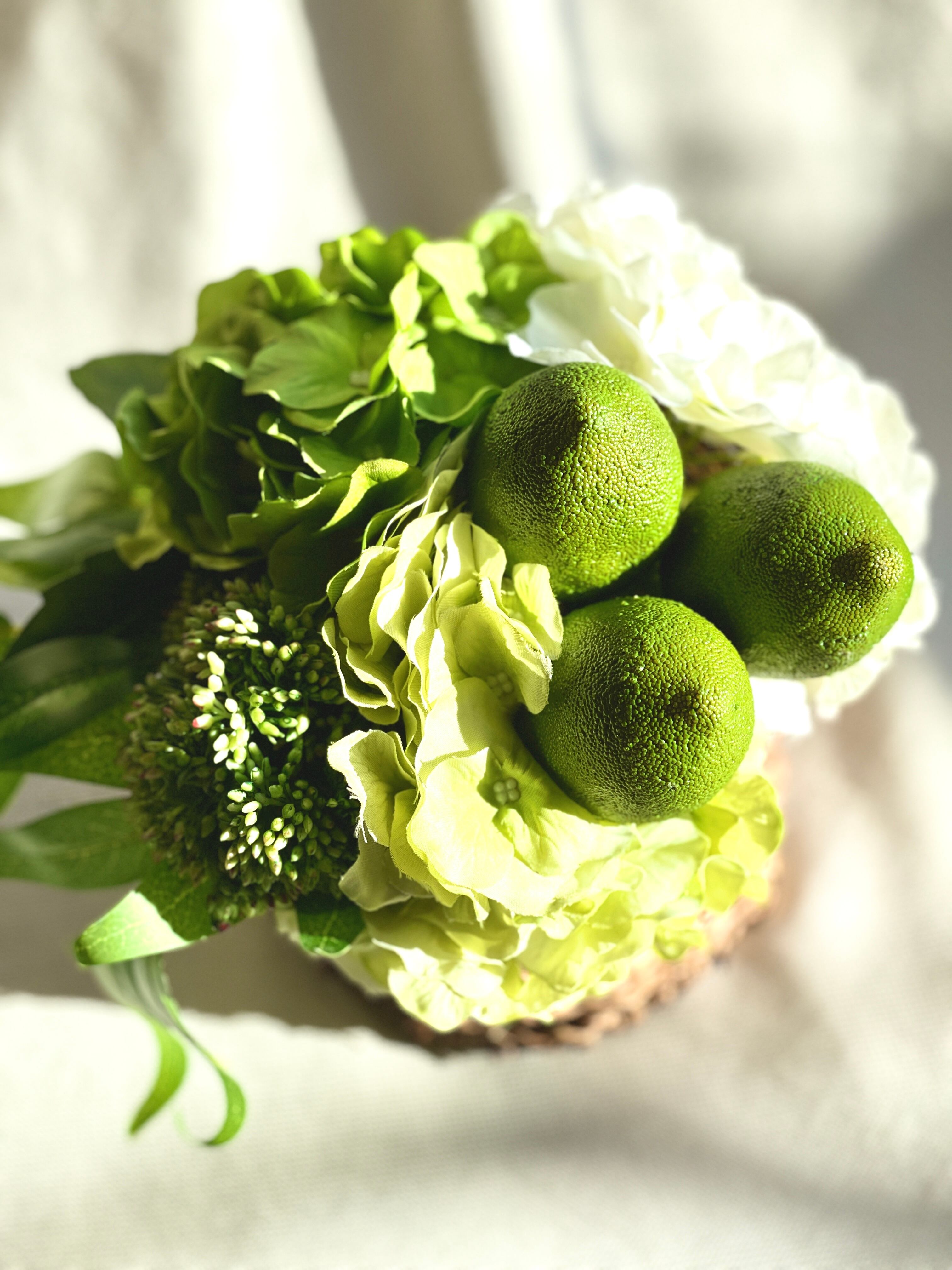 ライムを活けた爽やかなアレンジメント。