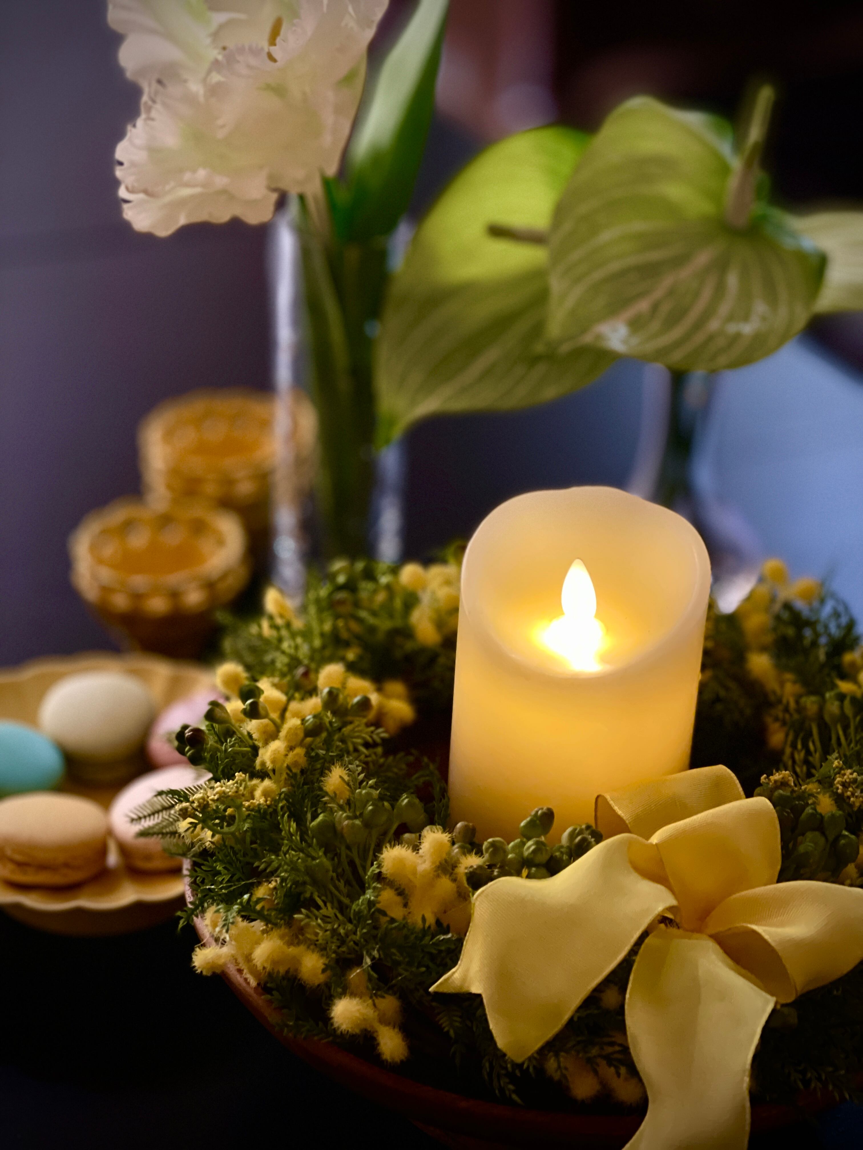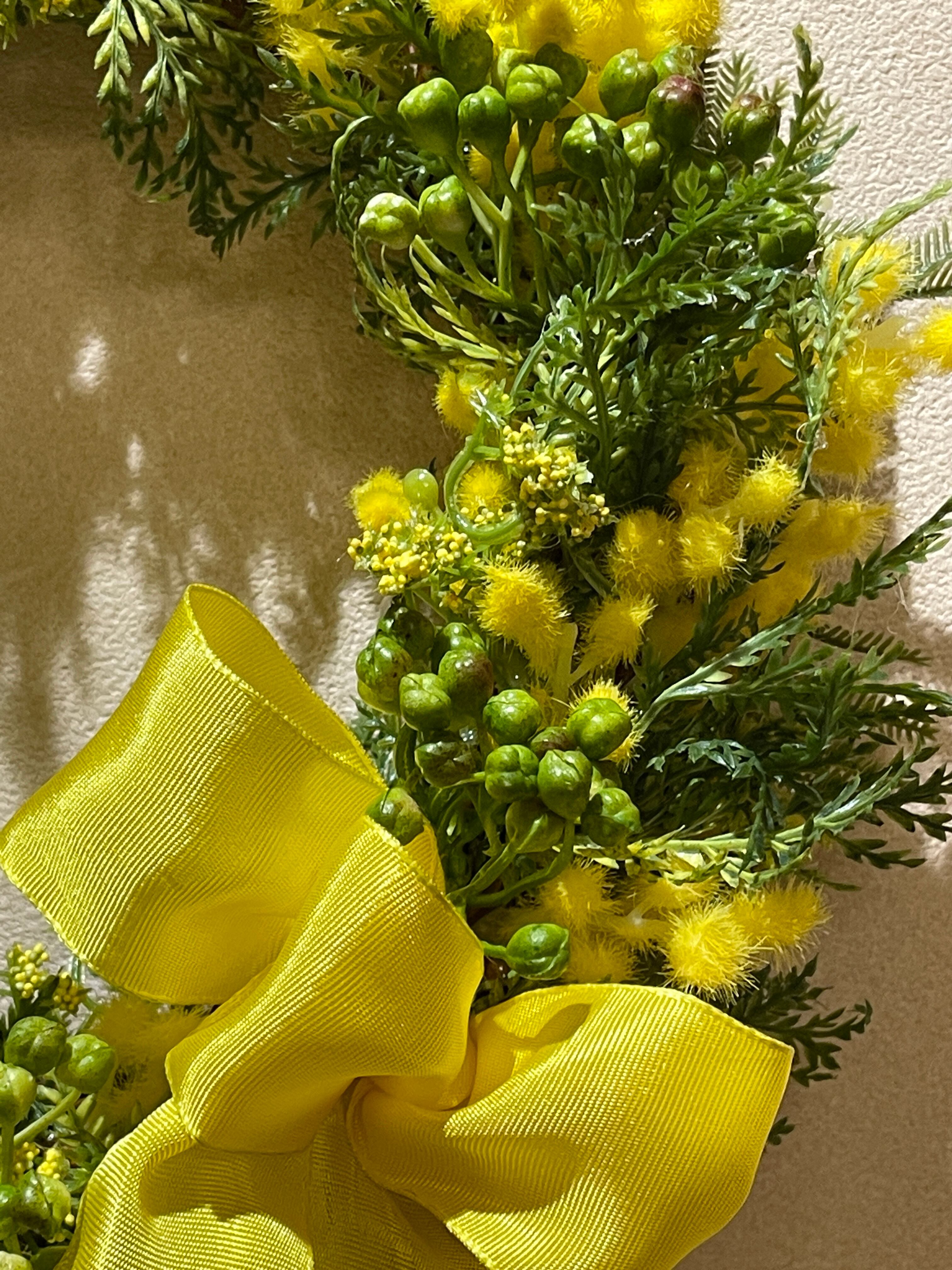 春らしいグリーンとミモザのナチュラルリース。