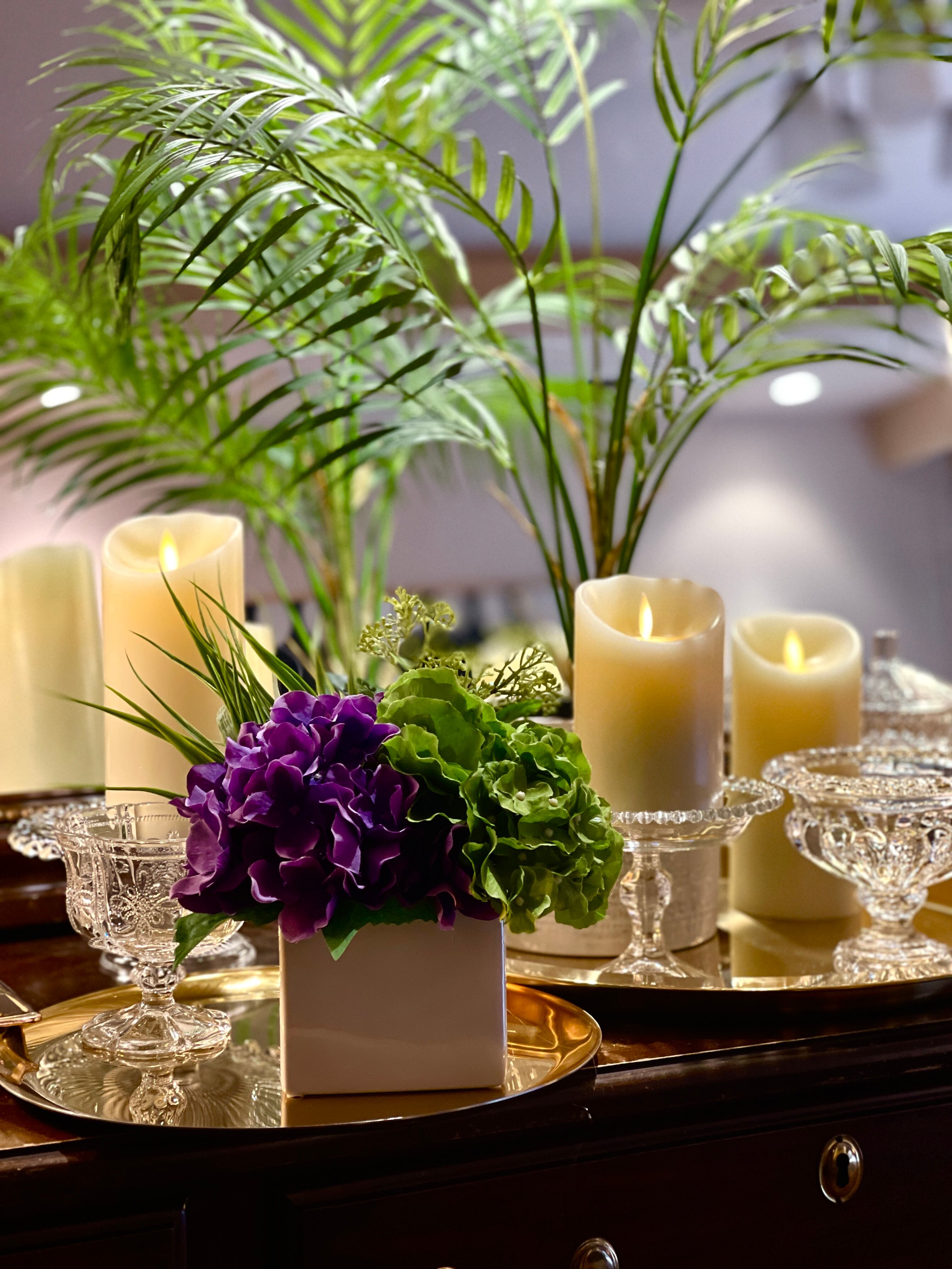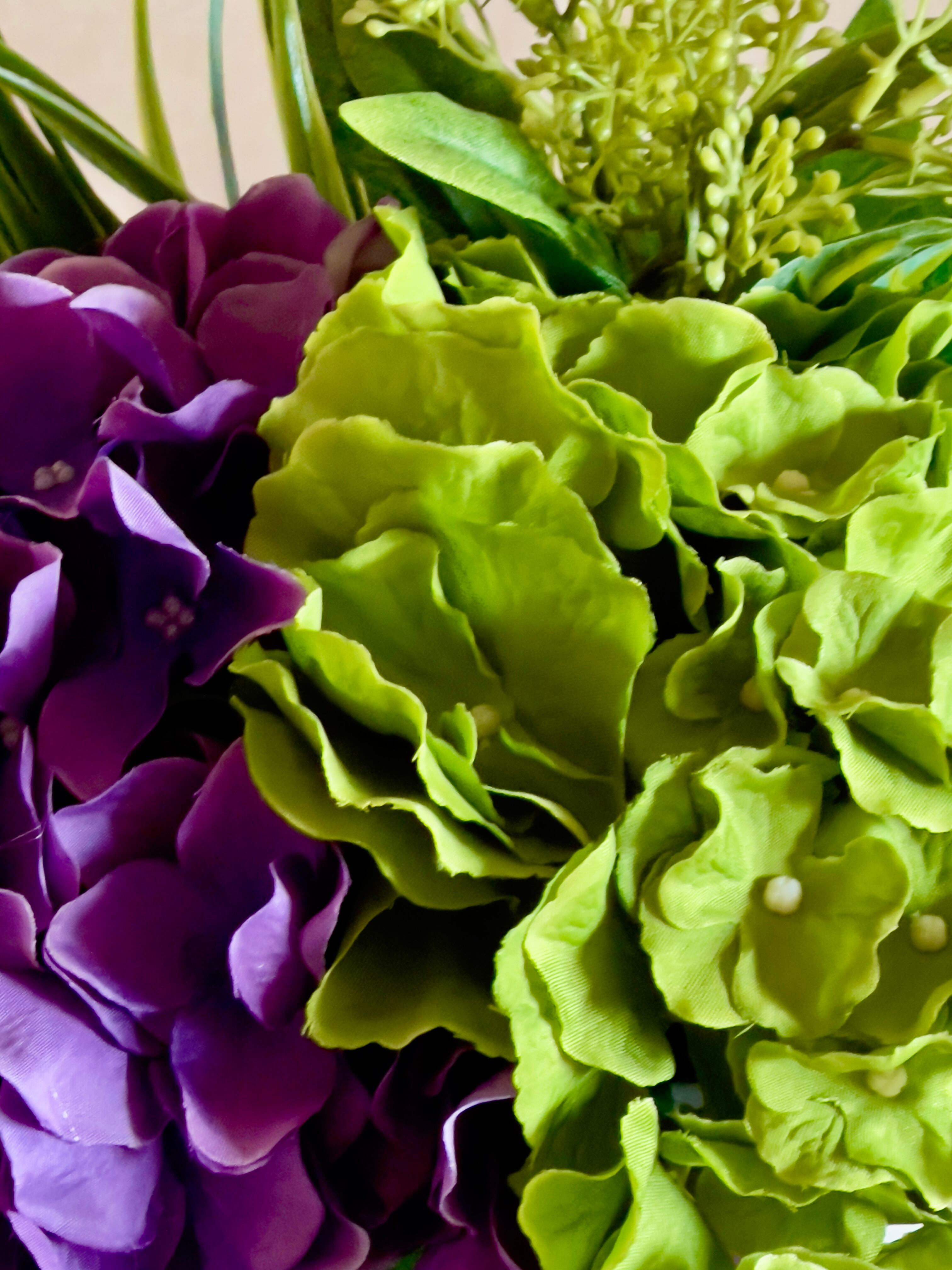 紫とグリーンが調和した、涼やかな雰囲気が漂う一品。